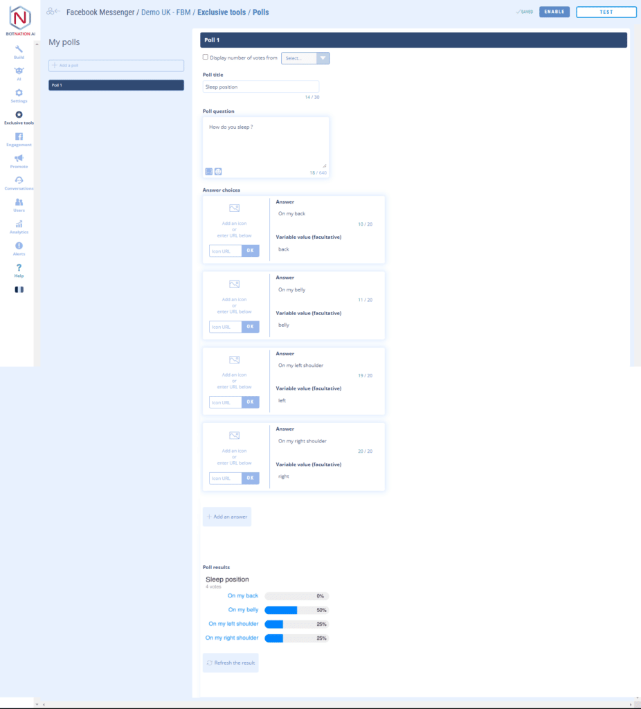 You then need to give the poll a name as it will appear to the chatbot users.