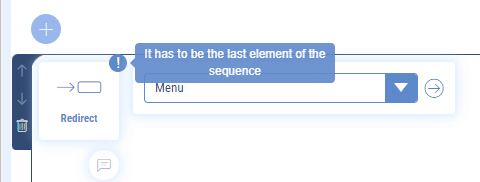 Certain elements must be included at the end of the sequence. You won’t be able to have any items below them. The best example is the redirection element, which will allow you to launch another sequence (handy for displaying a menu that will be used in several places in your chatbot, for example!).