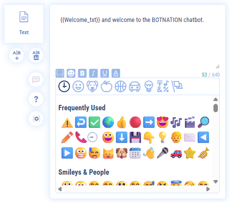 A keyboard with the main emojis is now available directly in the edition of your chatbot on Botnation.
