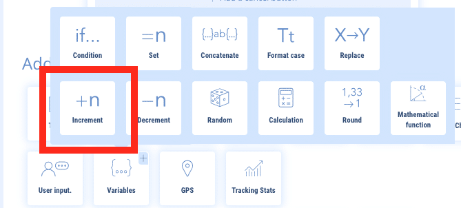 Create a variable named {{PASSAGE}} for example. When the user goes into the chatbot, the first default welcome message will be displayed. The chatbot will add “+1” to each passage on this sequence.
