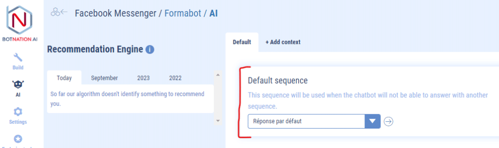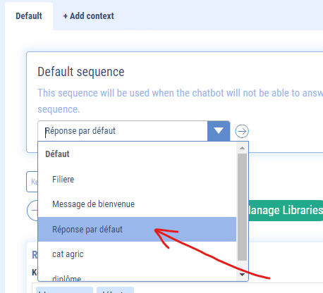 (In the example below, we have chosen the “Réponse par défaut” sequence)