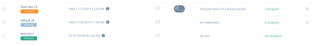 • If you want to use an existing campaign as a template, simply duplicate it by clicking on the icon at the beginning of the line.