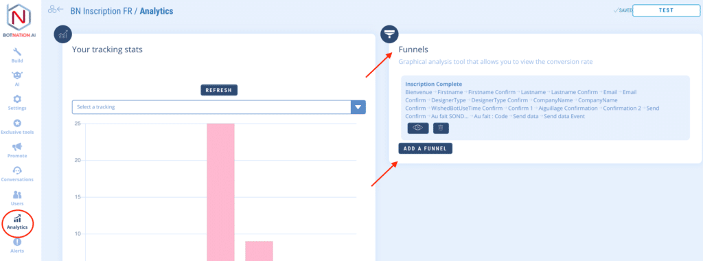 To do so, choose the chatbot on which you want to implement these funnels and go to the “Statistics” tab