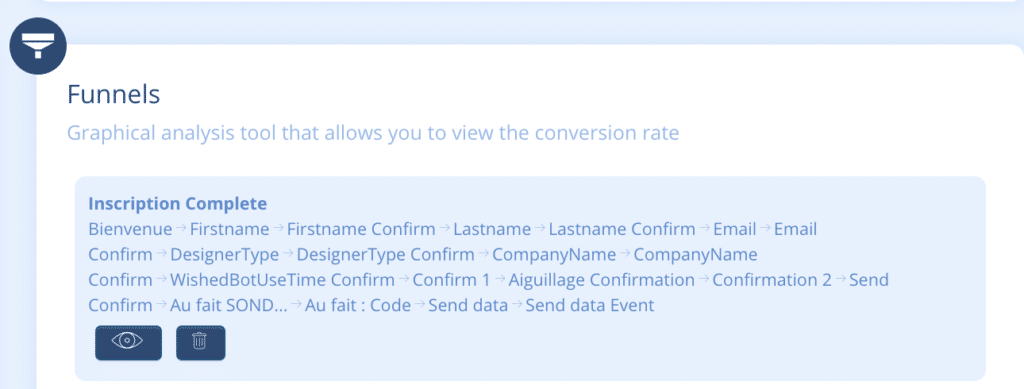 Your funnel is ready and is displayed in the list. You can create as many as you want and delete them via the trash logo. The measured sequences are displayed under the funnel name.
