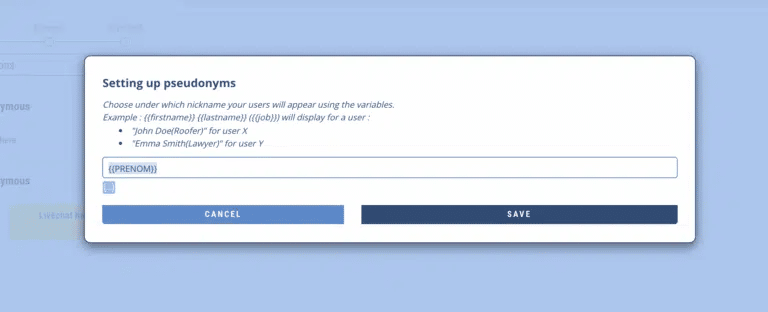 Then, click on the small cogwheel, visible on the picture above. This will show you the pseudonym settings: