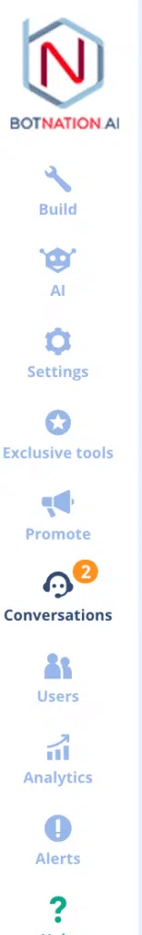 Once your chatbot is open, go to the “Conversations” side tab.