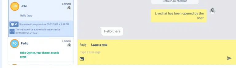 Botnation has a human escalation module by default. In short, when the chatbot shows its limits (because it does!), you can propose to transfer the discussion to a human, in the form of live chat. Several users have told us that they want to use live chat 100% of the time, without the chatbot automating the conversations.