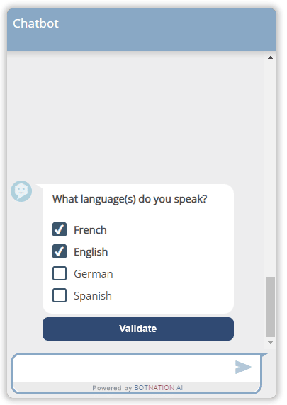 The multiple choice list is a feature of Botnation AI that allows you, for example, to display a list of possible answers where it will be possible for the user to select more than one, both on a chatbot for your website and Facebook Messenger.