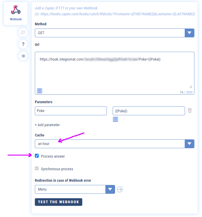 If you activate a one-hour cache, the call to your webhook is then only sent once per hour maximum, whereas you certainly need to receive all the information at each call.