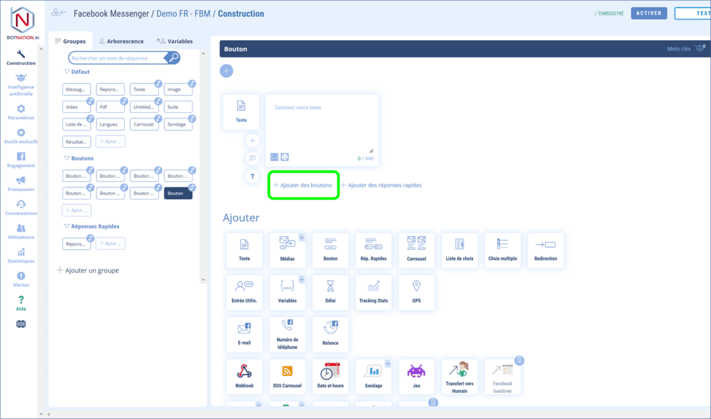 Ajoutez des boutons d’action dans votre chatbot Messenger