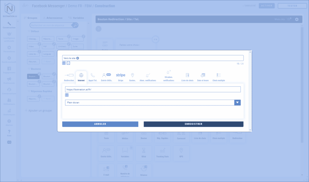 Votre chatbot bot redirigera vos utilisateur vers un site web.