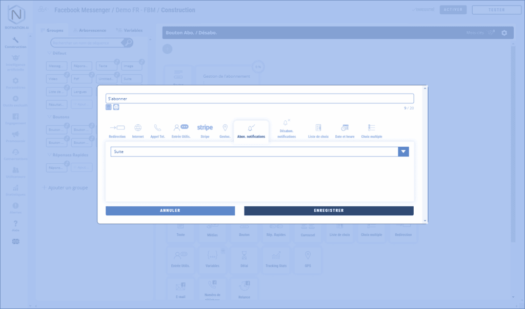 En cliquant sur ce bouton, l’utilisateur s’abonne et autorise donc le chatbot à envoyer des notifications.