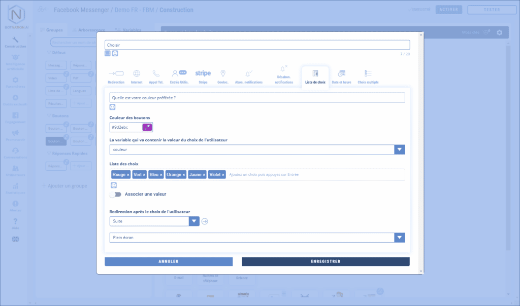 Voir l’article : La liste de choix multiple (Messenger)