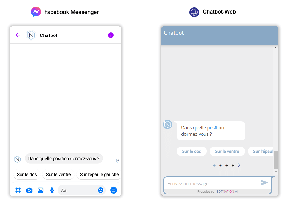 Le sondage quand il sera ajouté au chatbot prendra la forme de Réponses Rapides (voir les articles suivants : Ajouter des Réponses Rapides (Messenger) et Ajouter des Réponses Rapides (Chatbot web)).