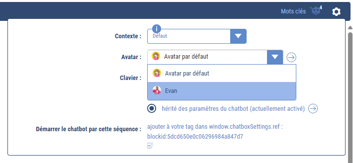 Si vous n’activez aucun persona dans une séquence, c’est l’avatar principal du chatbot qui s’affichera.