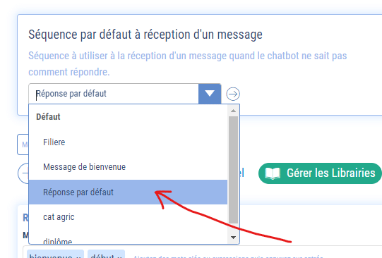 Choisir une séquence pour quelle devienne la séquence par défaut de votre chatbot.