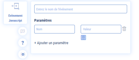 puis d’indiquer le nom de évènement, qui sera intercepté via ce nom sur votre site, et éventuellement d’ajouter des paramètres complémentaires qui seront récupérés sous la forme clé/valeur sur votre site. Ces paramètres peuvent être composés de variables Botnation.