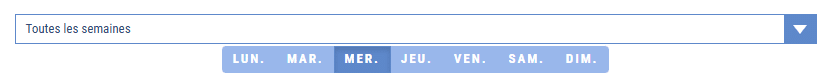 Cette liste vous donne le choix entre exécuter la notification tous les jours ou toutes les semaines. Si vous choisissez toutes les semaines, une liste de jour apparaîtra vous permettant de choisir les jours de lancement en cliquant dessus. Dans l’exemple ci-dessous, nous avons choisir de lancer la notification tous les vendredi et tous les dimanche :