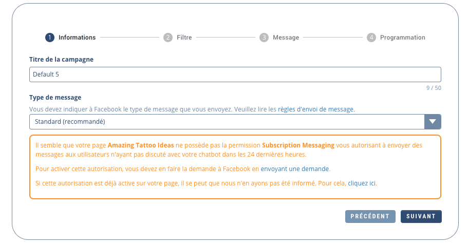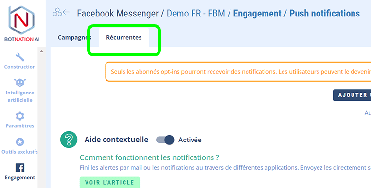 Ajoutez facilement une notification Facebook Messenger récurrente qui va s’exécuter régulièrement.