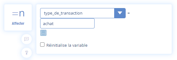 Et on se sert de la séquence intermédiaire pour stocker l’information en affectant la valeur “achat” à la variable “type_de_transaction”.