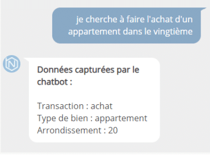 Il faut donc, non seulement que le chatbot comprenne une phrase comme “Je cherche un appartement à vendre dans le 16e” mais aussi traduire ces informations en données compréhensibles par le moteur de recherche.