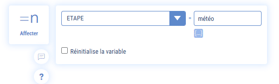 Si vous souhaitez faire revenir l’utilisateur à une étape précédente de votre chatbot Botnation il vous suffit lors de chaque étape importante du parcours de l’utilisateur d’affecter une variable dédiée à cela, par exemple {{ETAPE}} = « météo ».
