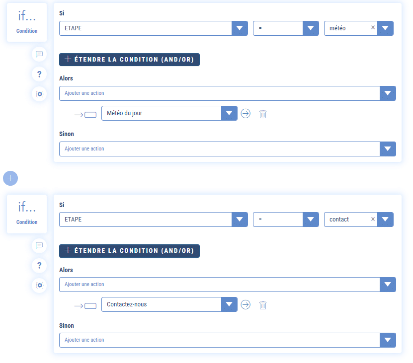 If {{ETAPE}} = « météo » then redirection vers la séquence « météo du jour »